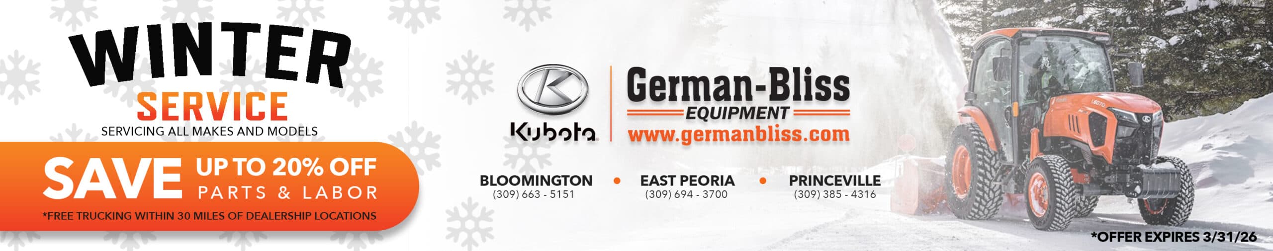 Inspect Safety System, Replace Fuel Filter, Change Engine Oil & Engine Oil Filter, fuel stabilizer, Apply Grease to Fittings, Clean Air Filter, Check Tire Inflation, Inspect Drive System Belts, Load-Test Battery, Check Charging System, Inspect Unit for Proper Operation, Check Transmission/Hydraulic Oil Levels, Check Belt Tensions, & Free Warranty Inspection (for supported brands)